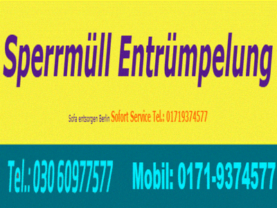 Wenn der Kunde uns telefonisch Entrümpler privat Sperrmüll Sofa entsorgen privat kontaktiert, können telefonisch alle Details zur Entsorgung von Sperrmüll in privat besprechen. Es wird preiswert sein.